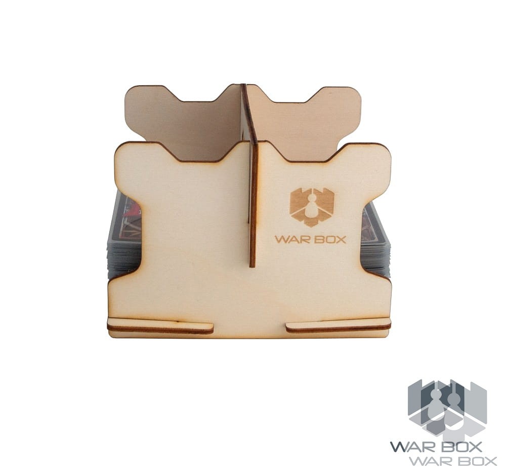 Dual-sided 2-deck card holder suitable for Standard CCG / LCG cards (63.5x88 mm). The bottom of the holder has been placed at the right angle to prevent the pile of cards from falling apart during the game. One card compartment holds about 270 cards without sleeves, 220 cards with thin sleeves (about 50 microns), or 150 cards with thick sleeves (about 90 microns).