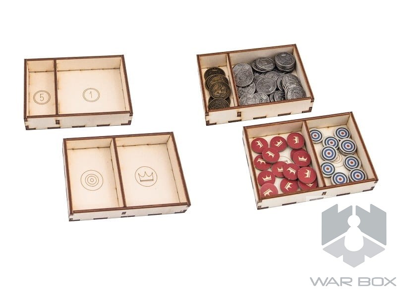 - 6 different containers for coins, feuda, markers, coins etc.