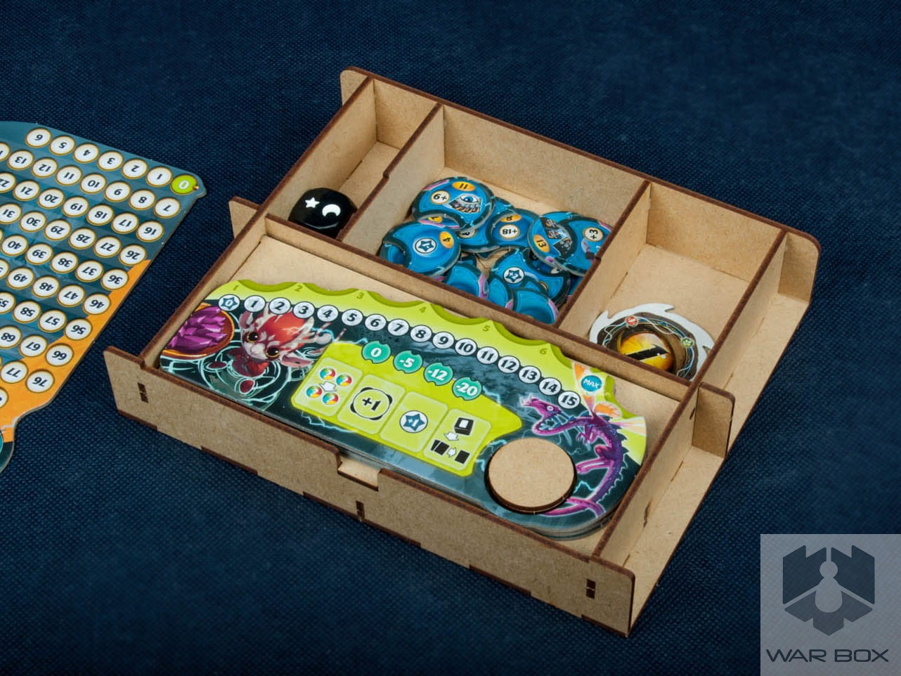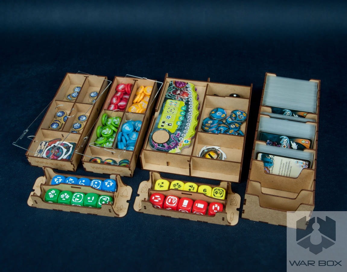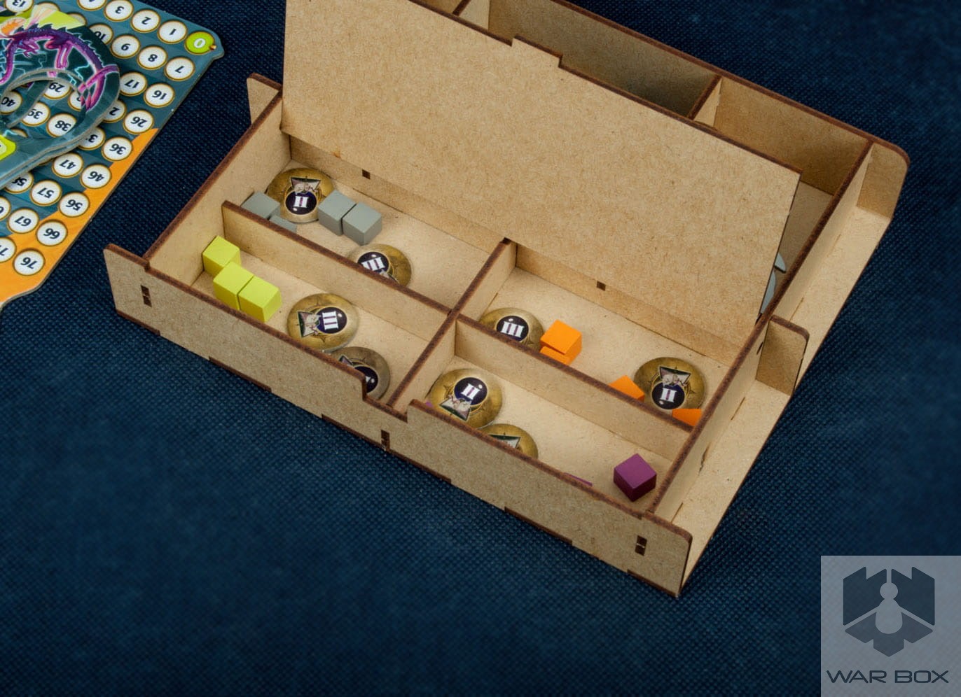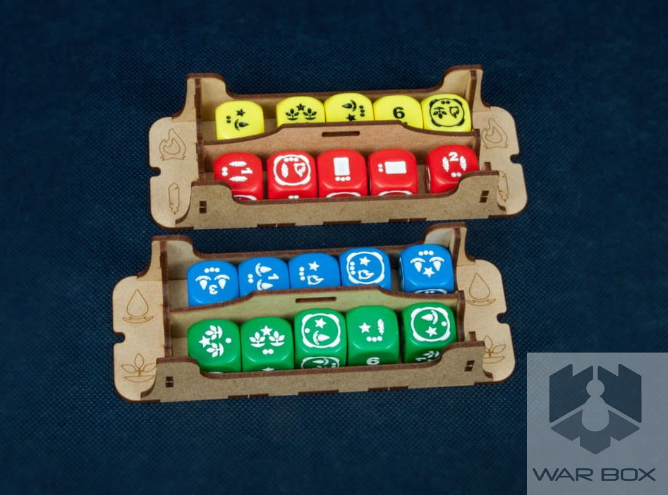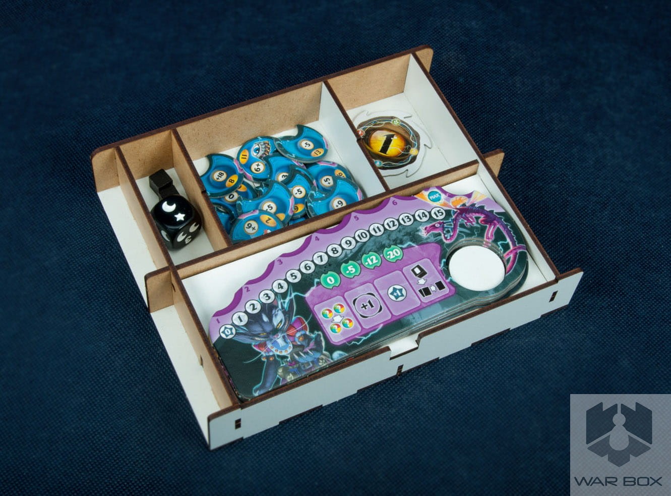 We present the second edition of the insert compatible with the Seasons game. The product has been redesigned from scratch, using the latest knowledge and technology from WarBox. Beautifully engraved, the insert will speed up gameplay in this excellent and colorful game. Containers with closable lids will protect the components from spilling during transport.