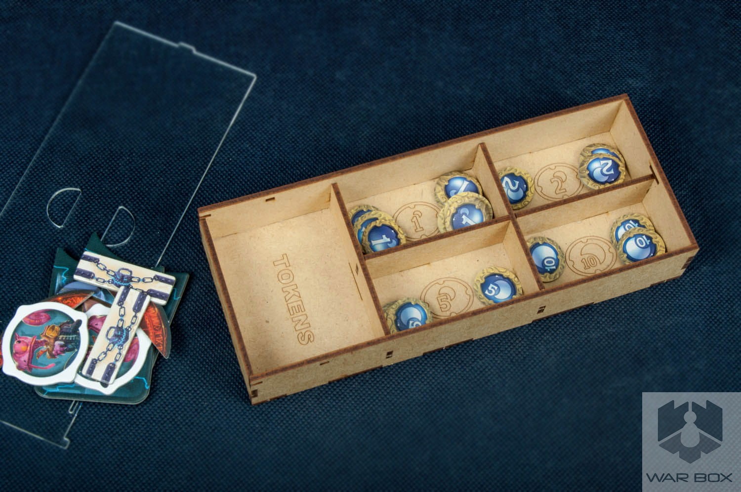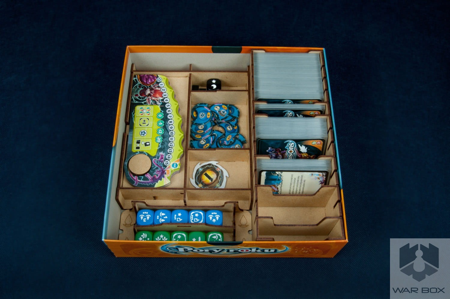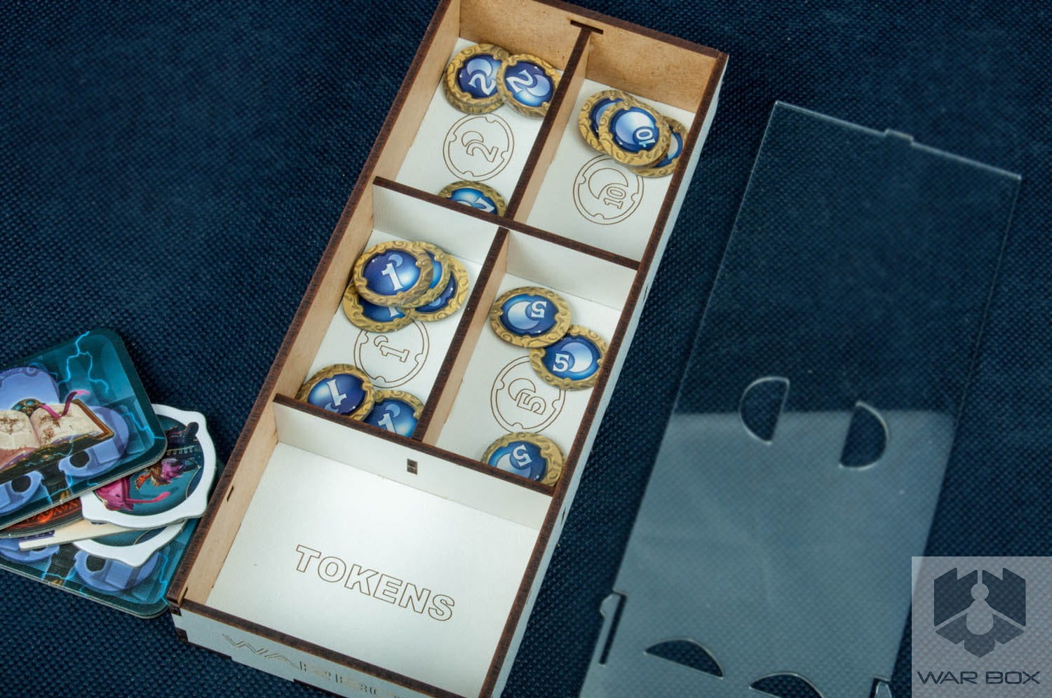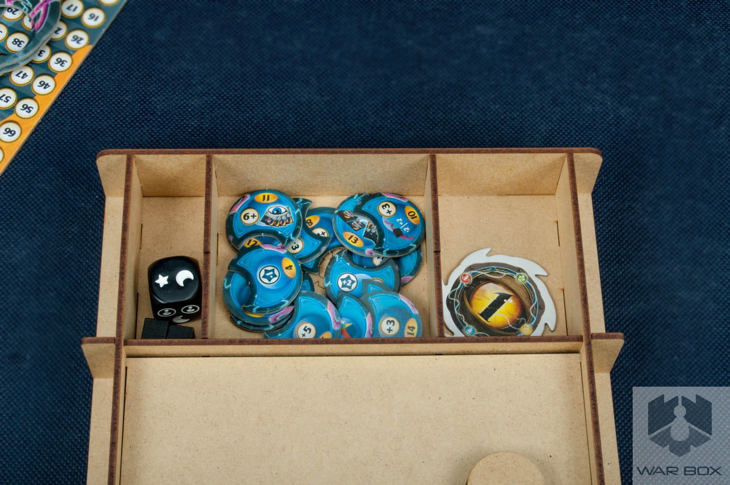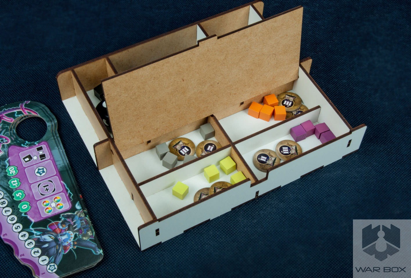 We present the second edition of the insert compatible with the Seasons game. The product has been redesigned from scratch, using the latest knowledge and technology from WarBox. Beautifully engraved, the insert will speed up gameplay in this excellent and colorful game. Containers with closable lids will protect the components from spilling during transport.