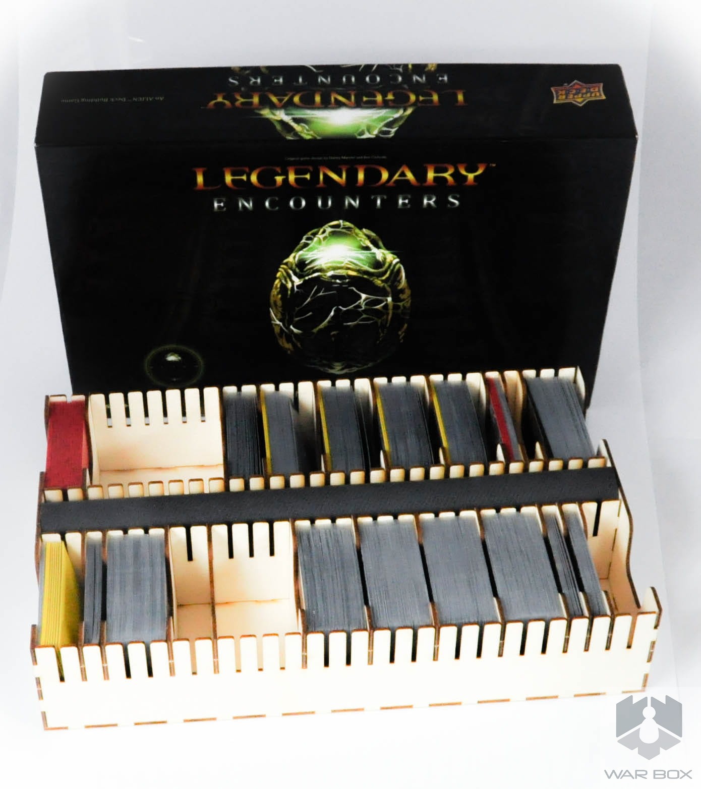 A wooden game organizer for Legendary Encounters series: Alien/Predator/Firefly deck building game. It accommodates sleeved cards and leaves quite a lot of space for future expansions - it is shown in our pictures. Additionally you receive 23 adjustable dividers which can help you in card selection.