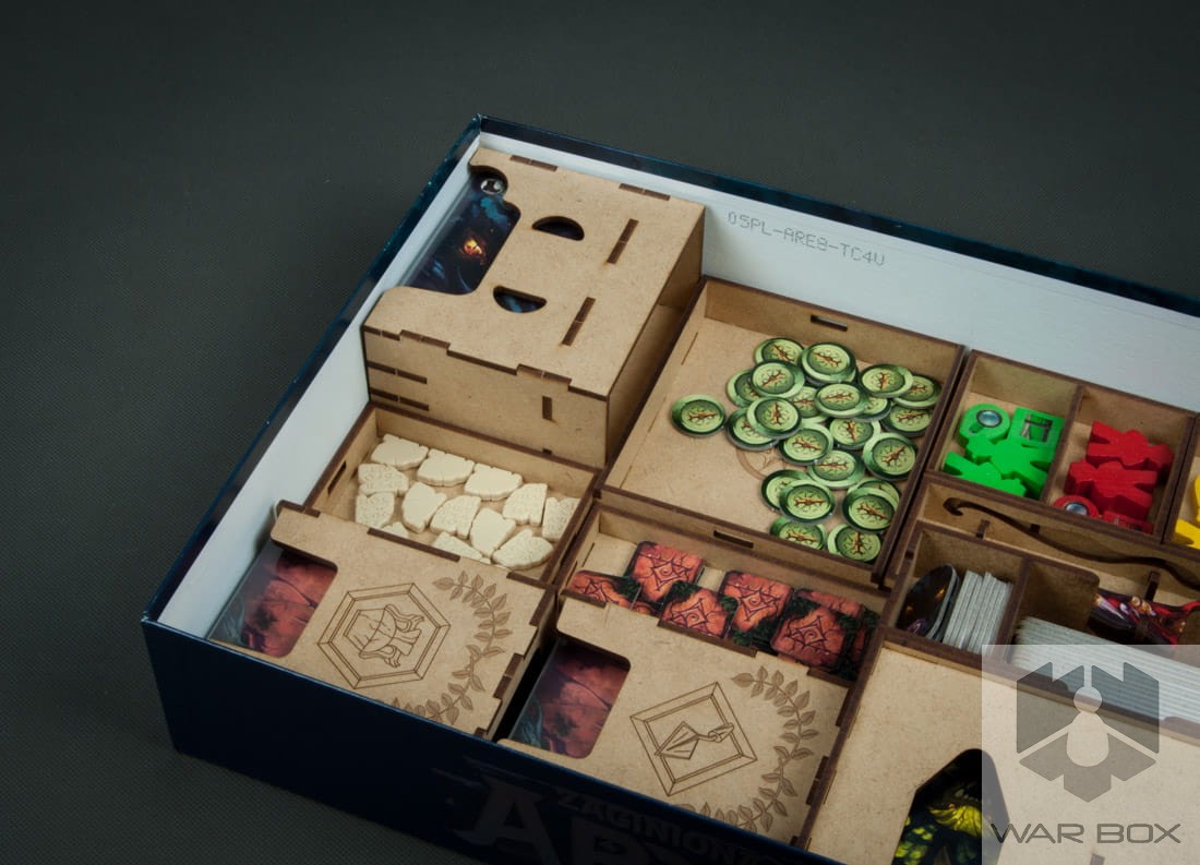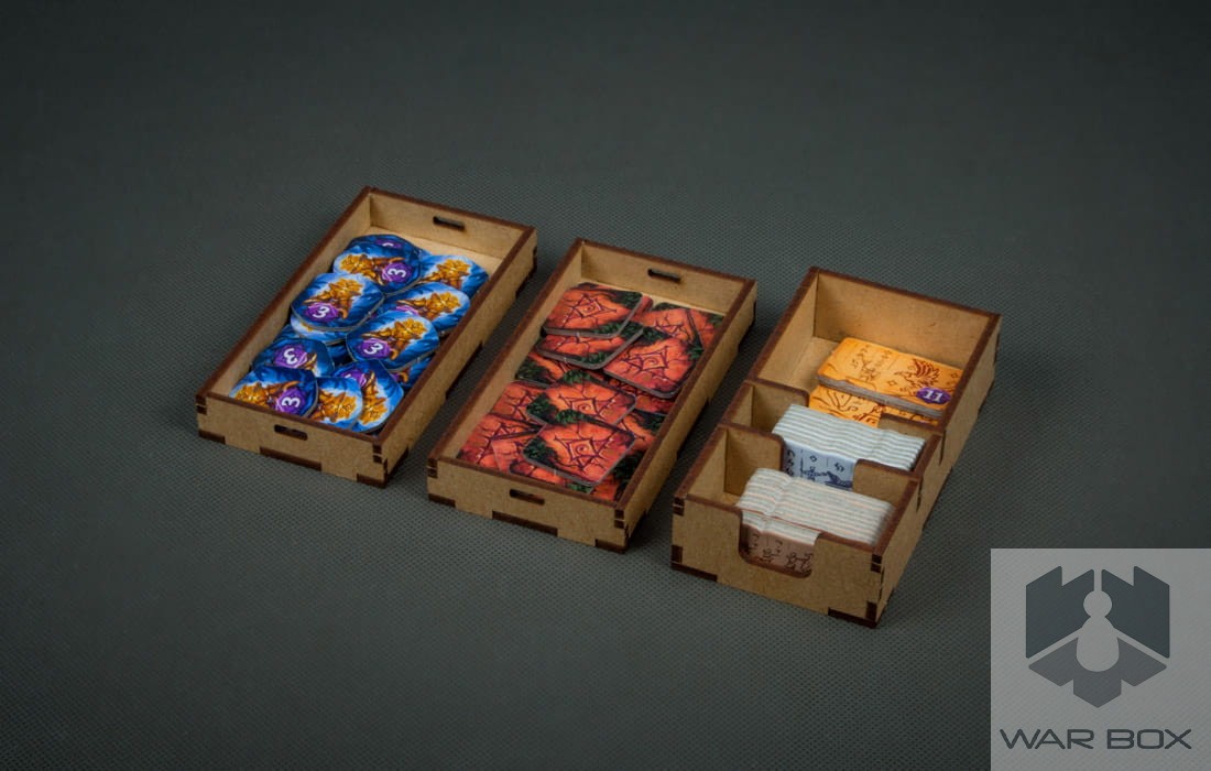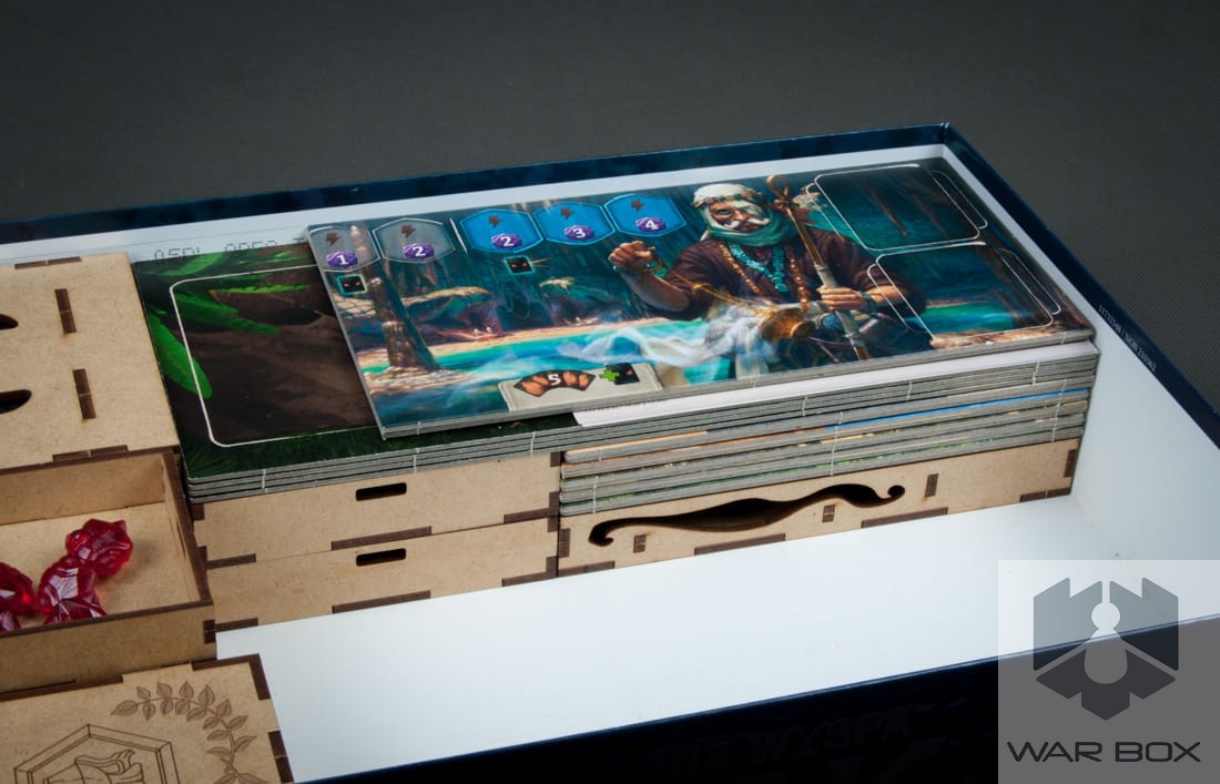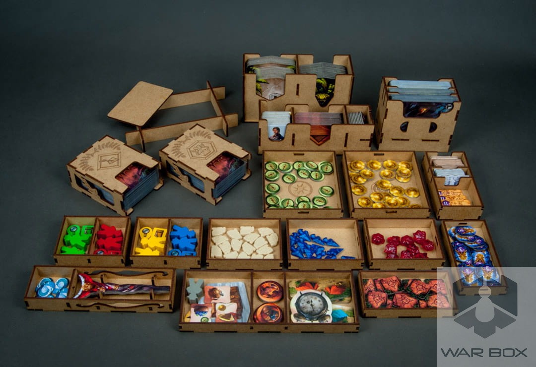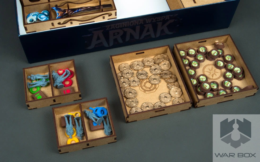 Insert designed for the game The Lost Island of Arnak. It can store the content of the core game and the Expedition Leaders expansion pack. A large number of elements causes a long game setup, and additionally we lose a lot of time to pack the game at the end of the game. With our product you can prepare the components for the game in less than 2 minutes and it will take you the same time to collect and put them into the box!