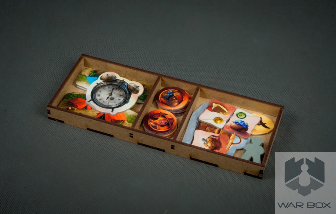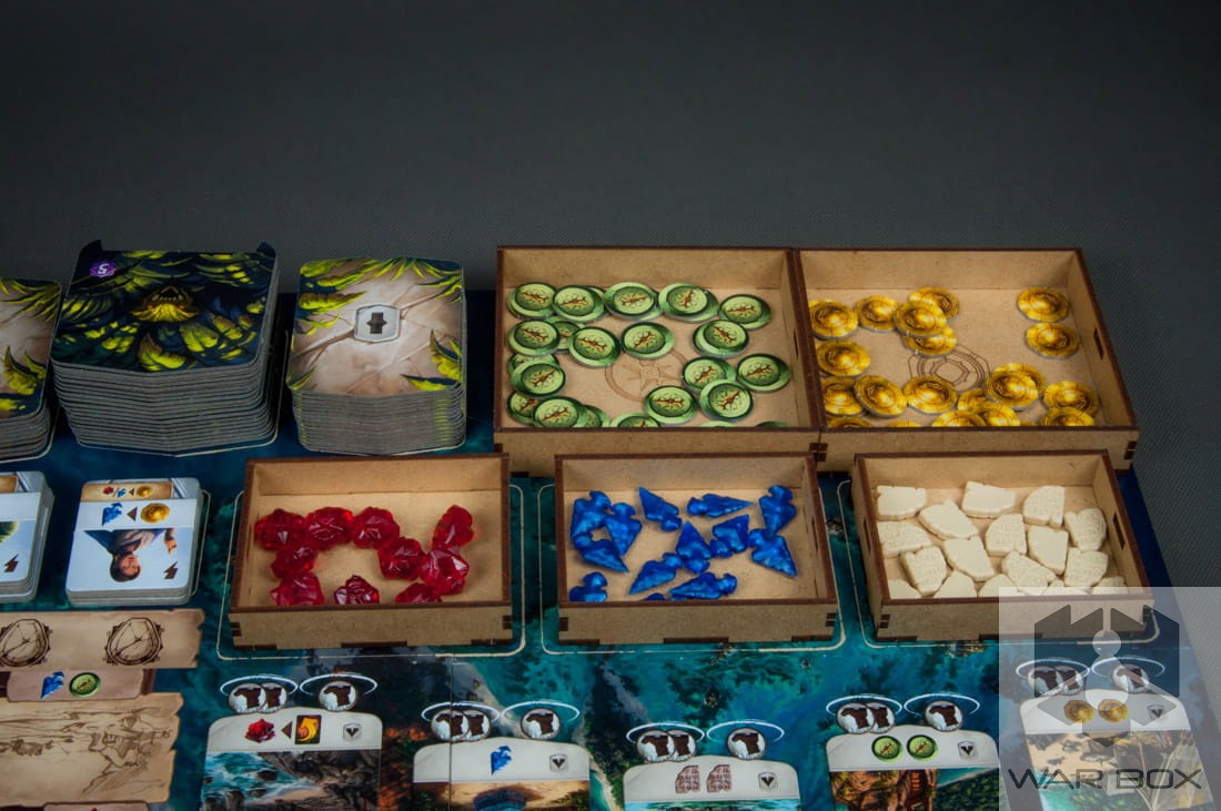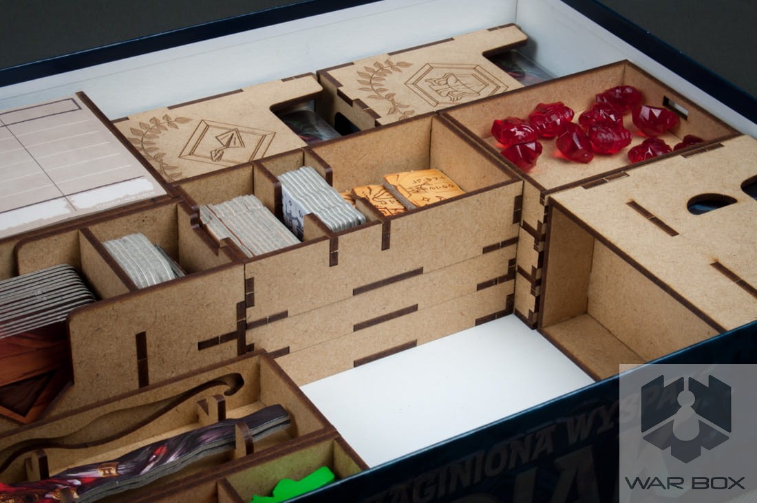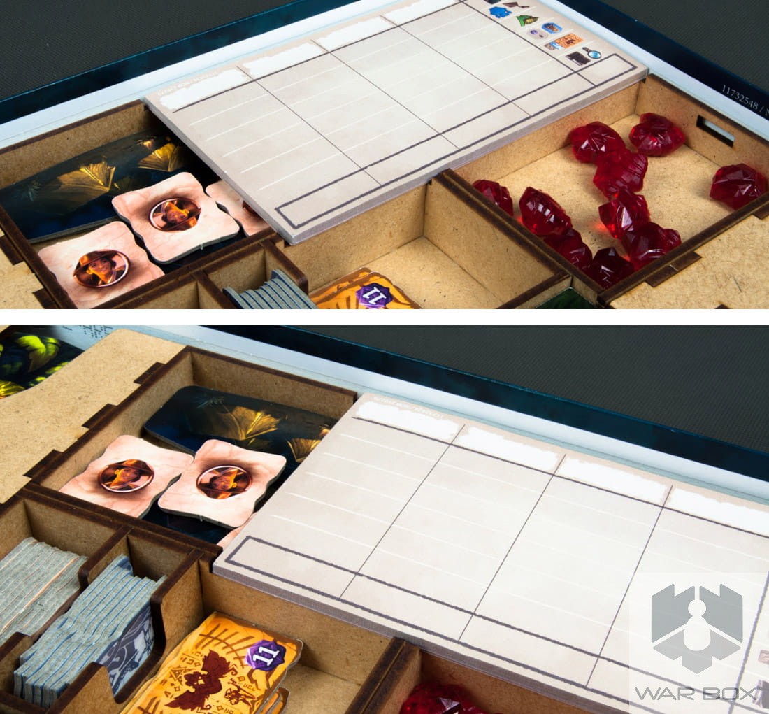 Insert designed for the game The Lost Island of Arnak. It can store the content of the core game and the Expedition Leaders expansion pack. A large number of elements causes a long game setup, and additionally we lose a lot of time to pack the game at the end of the game. With our product you can prepare the components for the game in less than 2 minutes and it will take you the same time to collect and put them into the box!