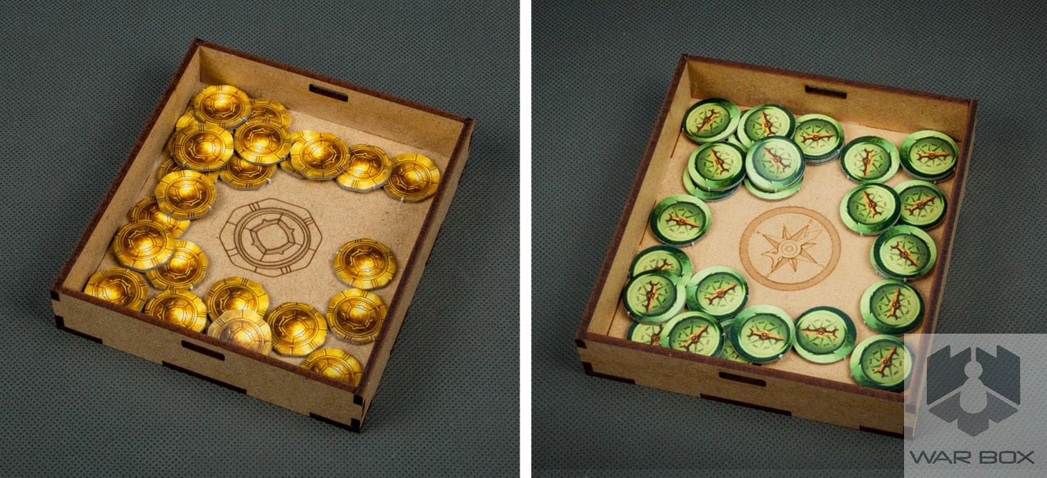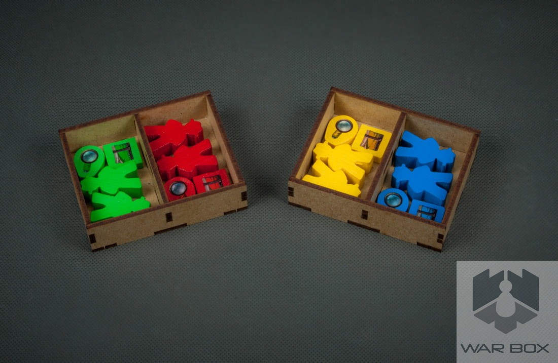 - 1 container for camp tokens, 1 player marker and character tokens