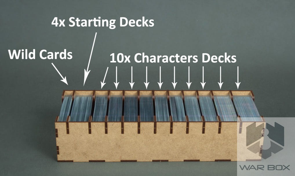 - 1 container for heroine decks, wild card decks, and 4 basic player decks