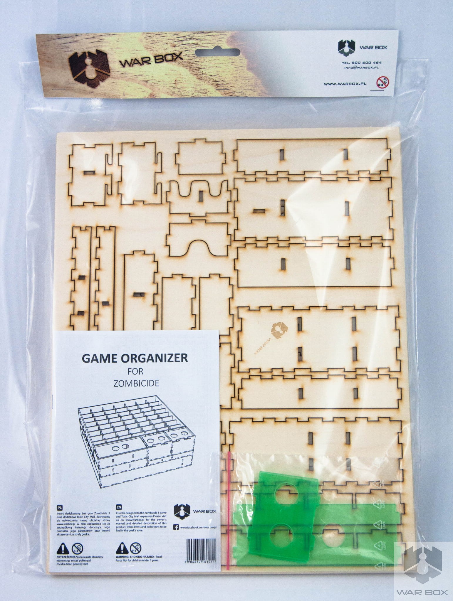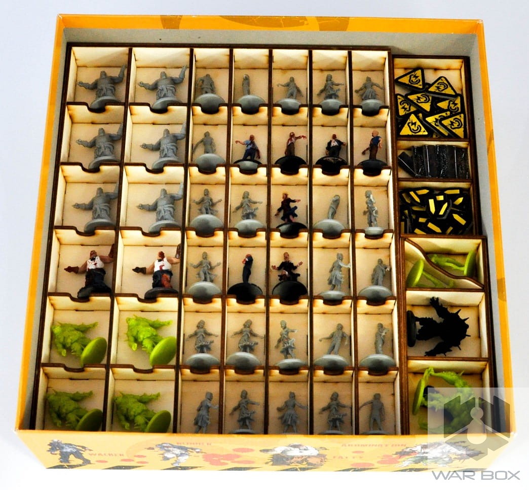 Attention! The insert is higher than the standard box (0,8 cm) and as a result the box is not fully closed (as it is shown on one of the pictures). It doesn't bother at all when it comes to storage. Additionally, you do not fit in the first player token from Toxic City Mall expansion - we suggest to use the token from the Zombicide base game. There is a possibility to fit above mentioned token in, but it requires two miniatures to be taken off instead from one of the spaces designed for them.