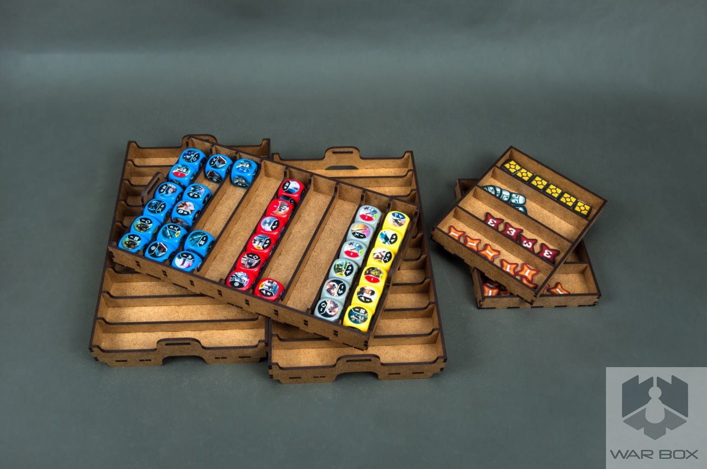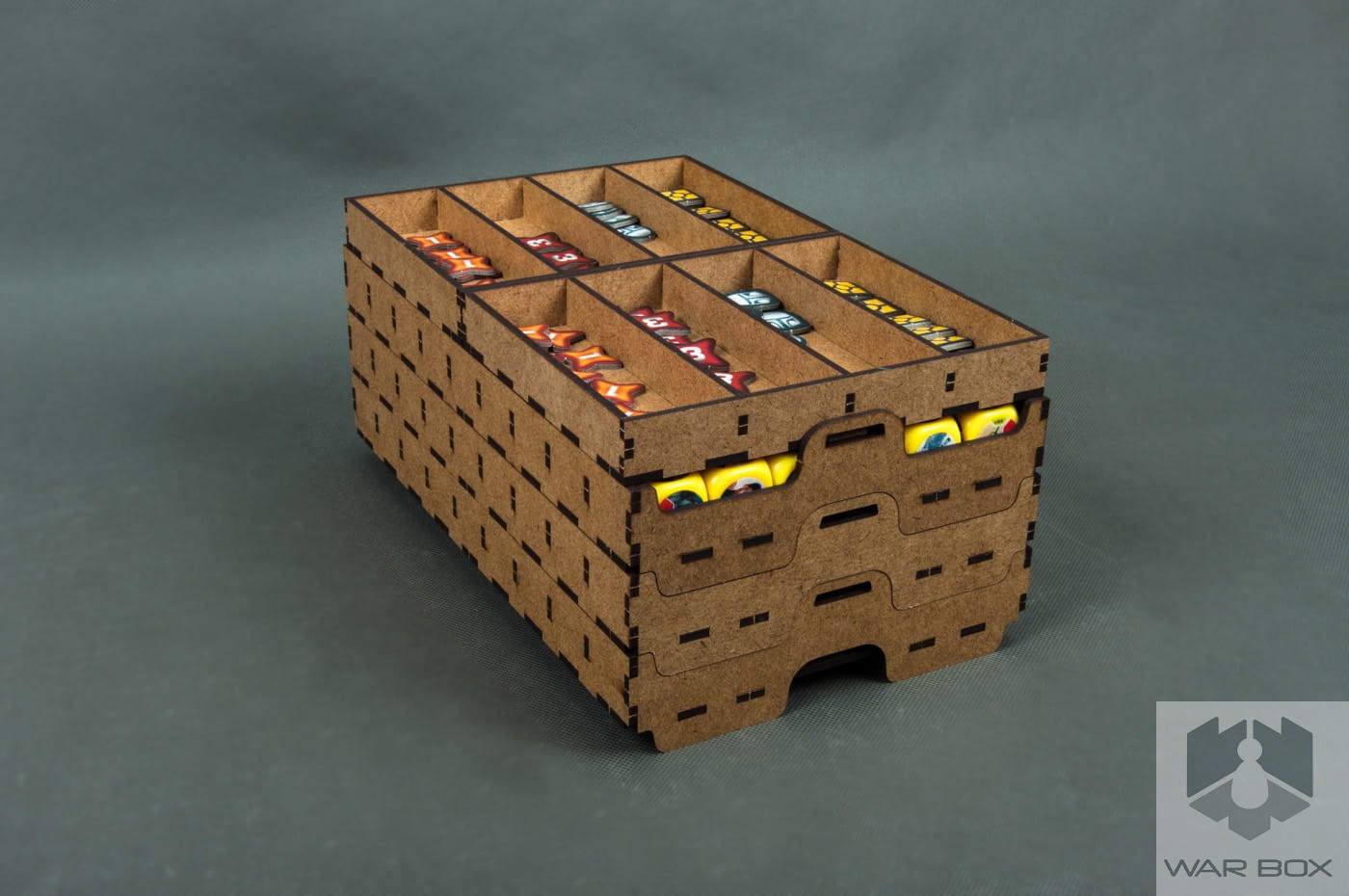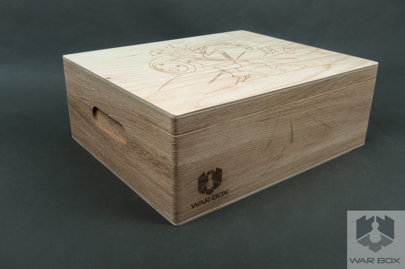 Dębowy, kolekcjonerski kufer dedykowany grze Star Wars Przeznaczenie. Produkt pomieści się ok 1300 kart bez koszulek oraz ok 700 kart w grubych koszulkach, jedna komora na karty ma 240 mm długości). Dodatkowo skrzynia została zaopatrzona w 3 pojemniki na kostki gdzie w sumie zmieścimy ich 162 sztuki. Do pozostałych dwóch pojemniczków możemy schować żetony, po zestawie dla oby graczy.