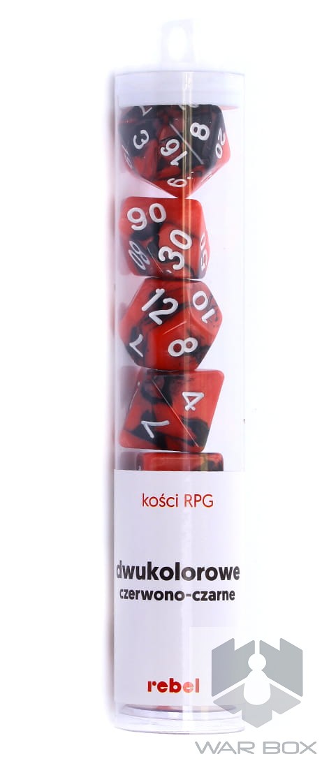 Komplet kości REBEL RPG - Dwukolorowe - Czerwono-czarne
