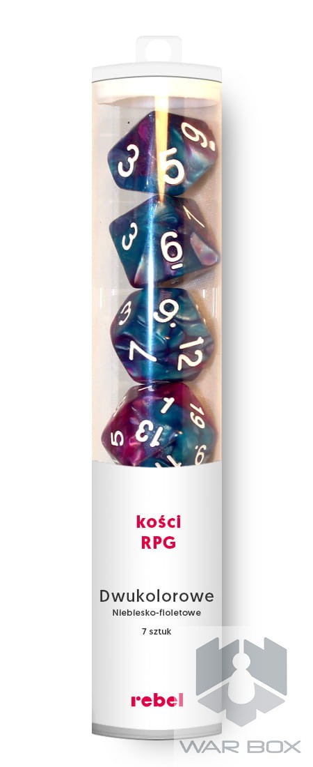 Komplet siedmiu dwukolorowych kości marki Rebel o unikalnym charakterze. Są to jedne z najtrudniejszych w produkcji kości, ponieważ wymagają bardzo uważnego zmieszania dwóch tworzyw o różnym stopniu zabarwienia. Przy produkcji tych kości wszystko może się zdarzyć. Niewłaściwe proporcje, zarówno barwnika, jak i dwóch tworzyw, mogą nieodpowiednio zabarwić daną partię produkcyjną. Tak samo groźne może być zbyt szybkie lub zbyt wolne ich mieszanie.
