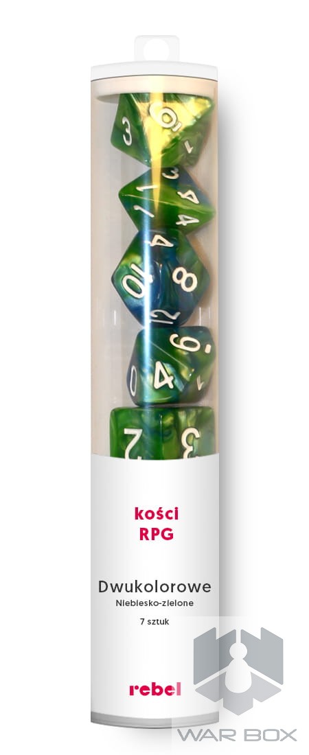 Komplet kości REBEL RPG - Dwukolorowe - Niebiesko-zielone