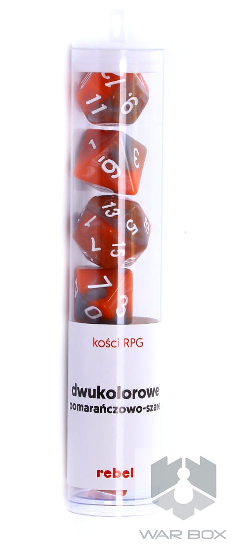 Komplet kości REBEL RPG - Dwukolorowe - Pomarańczowo-szare