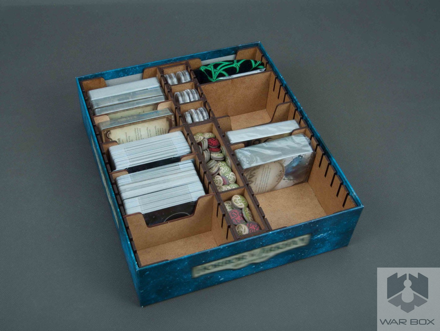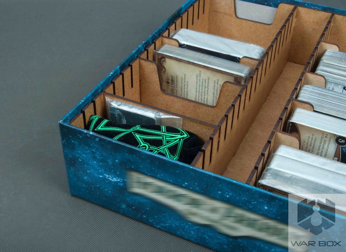 Insert dedykowany grze Horror w Arkham Gra Karciana (Edycja 2022-25). Insert stworzony dla tych którzy chcą utrzymać porządek w pudełku i jednocześnie usprawnić setup rozgrywki. Maksymalne zagospodarowanie przestrzeni pozwoli pomieścić ok 1030 kart bez koszulek, 850 kart w cienkich koszulkach, lub 740 kart w koszulkach premium (pomiar nie uwzględnia przegródek). Dwa pojemniki na żetony Chaosu pomieszczą również kapsle numizmatyczne o wymiarach średnicy do 31mm.